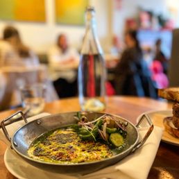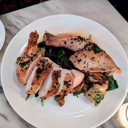This is one of those places that has been around for 25 years. I always said I would go, but alas, we moved out of state. When I knew we would visit Chicago again, I had an idea of where I wanted to go. Then they won a James Beard Award for Hospitality, and I figured I'd try to make a reservation. I tried online to make one, but it looked like a no-go. I thought, I'm just going to call in--this was worth it--and I got a reservation. They had some nice outdoor seating, and the inside was light and bright. There was a large bar, and I believe around the corner, there was more seating or a private dining room (a small wedding party came in while we were there). We came in and were seated promptly. From what I can ascertain, you need a reservation for dinner. Brunch, however, is first-come, first-served; they take no reservations for that. We sat in a little nook area and then started to look at the menus (both for food and a separate one for wine/cocktails/beer, etc.). I got a cocktail--unfortunately, I don't remember the name of it, but it hit the spot on that hot July day. We then got an appetizer of the Baked French Brie with Toasted Bread to slather it on. The Brie was sitting in the most beautiful green olive oil I have ever seen. It was tasty as well, perfect for sopping up with the toasted bread. The Brie was flavorful without being overly salty, as it sometimes can be. It also came with both green and black olives. This iconic dish has been on the menu for a while, and I completely understand why. It was delicious, and smearing that Brie on the toasted bread was divine. My husband ordered the Roast Chicken with Potato and Butter Greens, Panzanella, and Anchovy Aioli. I know you might be thinking, roast chicken? Yes, and it's another iconic dish that has been around for a long time. I get it--I tried a bit of it, and the chicken was succulent and the flavors were just right. The Brie and Roasted Chicken are Café Classics from when the restaurant opened in 1999. I got the Branzino with Grilled Cabbage, Summer Onions, Sungold Tomato, and Fennel Soubise. I really liked this dish. The fish was perfectly cooked and properly seasoned. I liked the idea of the grilled cabbage, though I wished it had more Sungold tomatoes, to be frank. We decided to share a dessert, which I highly recommend doing as well. We got the Pecorino Cake with Sour Cherry, Olive Oil Ice Cream, Sicilian Pistachio, and Candied Castelvetranos. I also got a dessert wine that perfectly paired with it, as suggested on the menu under the dessert description. This dessert was a complete surprise, also featuring shards of Parmesan. It hit the savory and sweet notes without being overwhelming--a lovely way to end the meal. The service was lovely and helpful. All the staff were on point, from when we checked in to when we ordered, with different people dropping off different dishes. I completely understand why they won that award. As an FYI, they automatically add a 20% gratuity to your bill. It's all online or on the menu, and they explain why. Parking can be a bit tricky as it's street-only and yes, you have to pay for street parking--ah, Chicago. All in all, it was very much worth the visit. If you are able, please go.