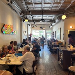 recently dined at Lula Cafe, drawn by their james beard award for outstanding hospitality, but found our server, allison, to be more of an order taker than an outstanding server. despite this, the food was delicious; both the breakfast burrito and the sourdough french toast special were scrumptious (pictured below)! the cafe's aesthetics are charming, from the well-designed menus to the beautifully plated dishes. i loved the gumball machine filled with buttons by local artists, but didn't have any quarters to grab one LOL overall, i'll likely return next time i'm in chicago, but i'd probably choose to sit at the bar or on the patio! **make a reservation if you can, but they may have space for walk ins!**