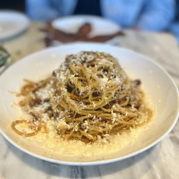 SERIOUSLY, what is in those chickpea frites?! They're so tasty and addicting!! They're perfectly crispy and salty! We almost ordered another portion but decided we should actually wait until the rest of our meal came out lol. And I'm glad we did bc both the pastas were phenomenal! The spaghetti is such a simple sounding dish but they make it 1000% tastier. Who doesn't like pancetta with some cheese?! We weren't really fans of the chilled mussels but that's just bc we think mussels are better warm. It took everything in us to leave the restaurant without an order of spaghetti and chickpea frites to-go. You know, for our hungry child at home? Service was friendly and fast. And we've already tried to make another reservation but to no avail. Lula is just too damn popular bc it's so damn good!